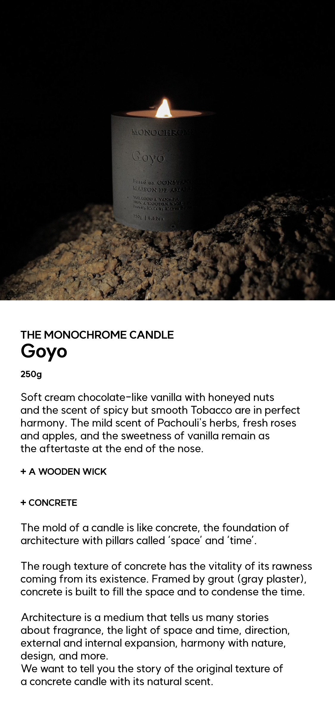 The Candle is completed as "I." Candle, only by itself, cannot have the true meaning. Like a picture of me looking at myself and recording, once I painted a self-portrait, a still candle sings a song of silence in a still space.
